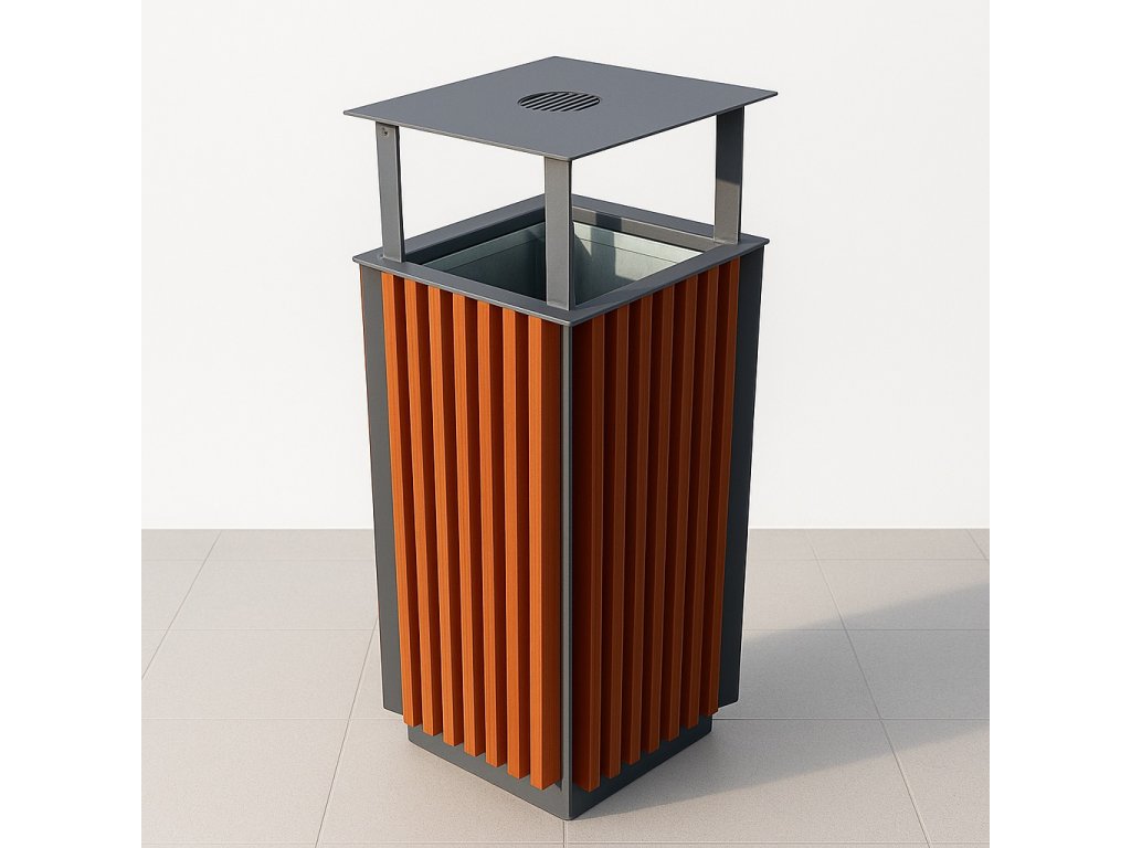 PARKOVÝ KOŠ NA ODPADKY SE STŘÍŠKOU JE ZHOTOVEN Z KOVOVÉ KOSTRY BAVENÉ PRÁŠKOVÝM KOMAXITEM A LAKOVANÉHO MASIVNÍHO SMRKOVÉHO DŘEVA. ROZMĚRY ODPADKOVÉHO KOŠE JSOU 40X40X105 CM. OBSAH VLOŽKY KOŠE JE 65 L. JE IDEÁLNÍ I JAKO MĚSTSKÝ MOBILIÁŘ S DESIGNEM NERUŠÍCÍM ŽIVOTNÍ PROSTŘEDÍ V PARKU. KOŠE MOHOU BÝT JAKO VOLNĚ STOJÍCÍ NEBO K PŘIŠROUBOVÁNÍ DO BETONU. ODPADKOVÝ KOŠ LZE VYUŽÍT V PARKU I NA ZASTÁVKU MĚSTSKÉ DOPRAVY.