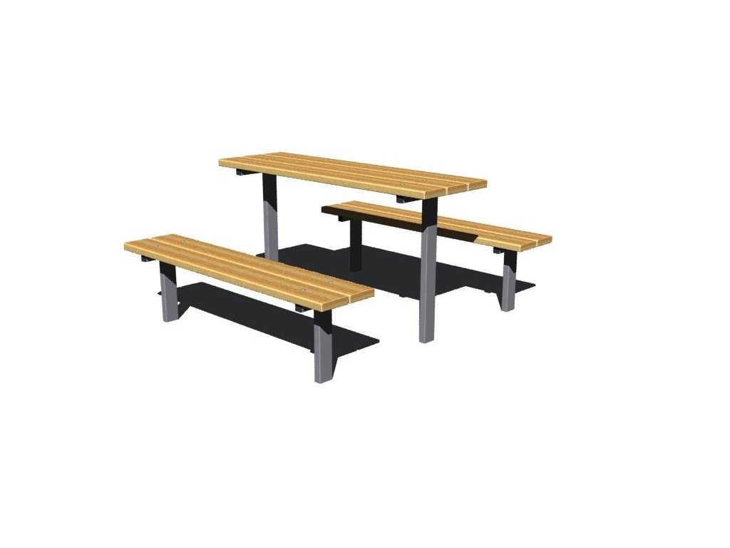 Zahradní souprava Standart s ocelovou konstrukcí laviček a stolu. Zahradní set jako celek vám nabízíme ve složení - 1x stůl + 2x lavičky bez opěradla zad. Kostra laviček a stolu je ošetřena vypalovanou barvou nebo žárově zinkována. Tak i latě jsou ošetřeny 3 x lazurou a tloušťka dřeva je 40 mm. Souprava je určená k zabetonování.